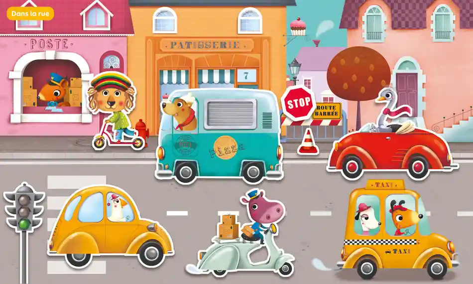 Dans ce livre d’autocollants sur le thème des engins, l’enfant s’amuse à compléter chaque image avec ses autocollants de grande taille faciles à manipuler. À lui ensuite de faire vivre les petits conducteurs en leur inventant une histoire. Une activité pour développer son adresse et son imagination !