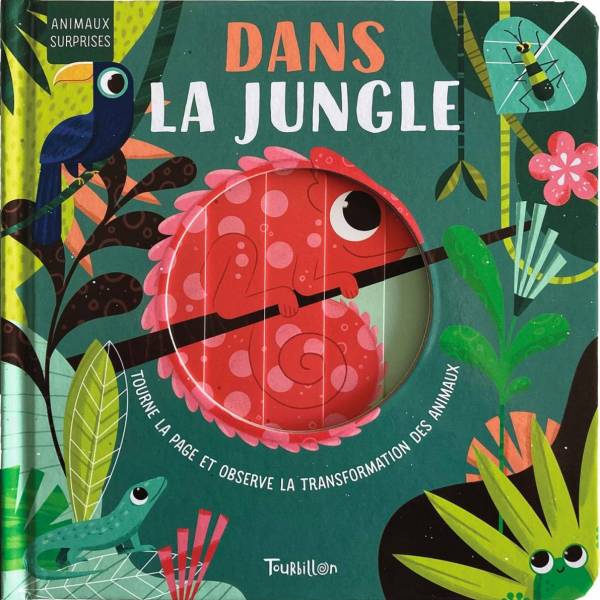 Transforme les animaux en tournant les pages : le caméléon change de couleur, le paon fait la roue, le lézard déploie sa collerette, etc.