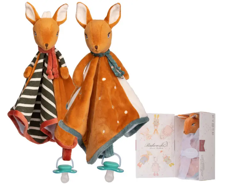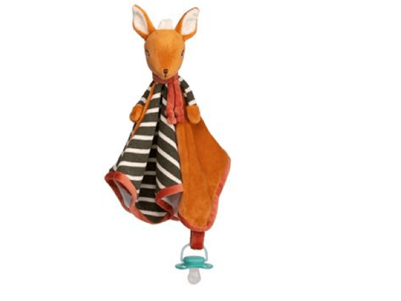 .Ce doudou et porte tétine Bambi d’une douceur incroyable s’appelle “Harald”. De couleur crème et daim, il mesure 30cm. De la célèbre maison suédoise, Barbara Bukowski, cette peluche répond aux exigences européennes.