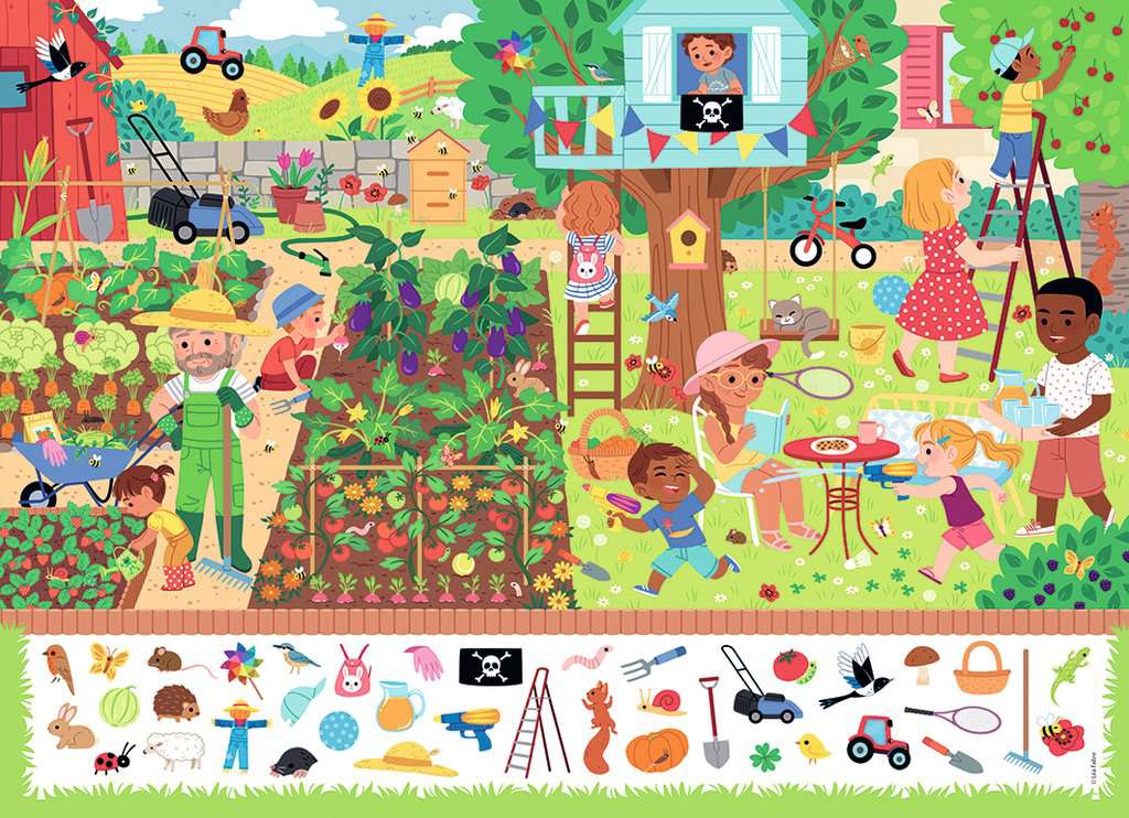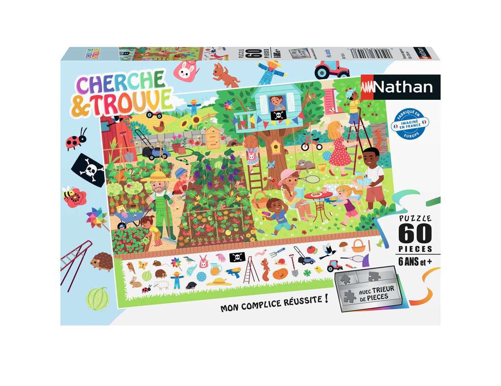 Puzzle enfants – 60 pièces – Au jardin (Cherche et trouve)